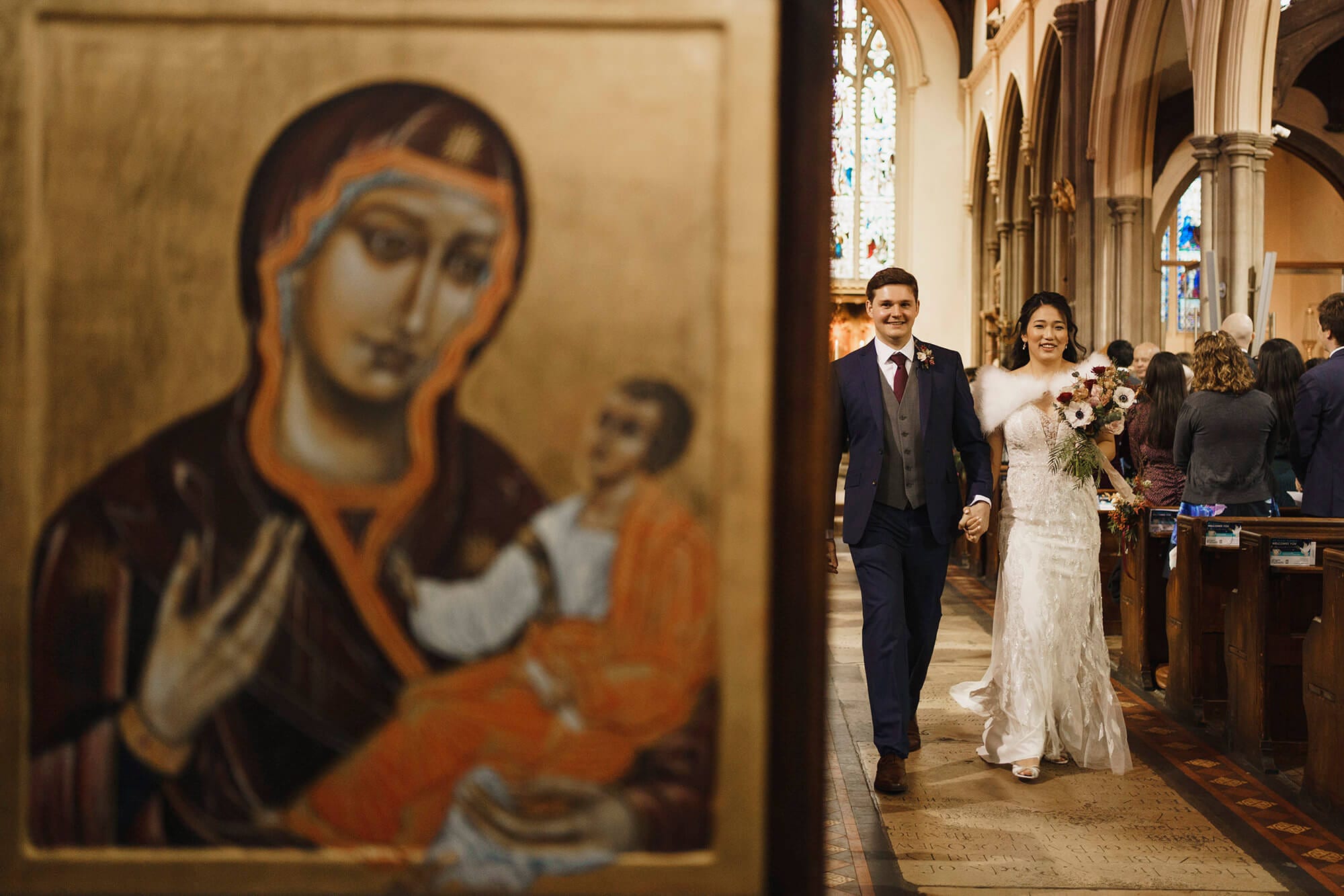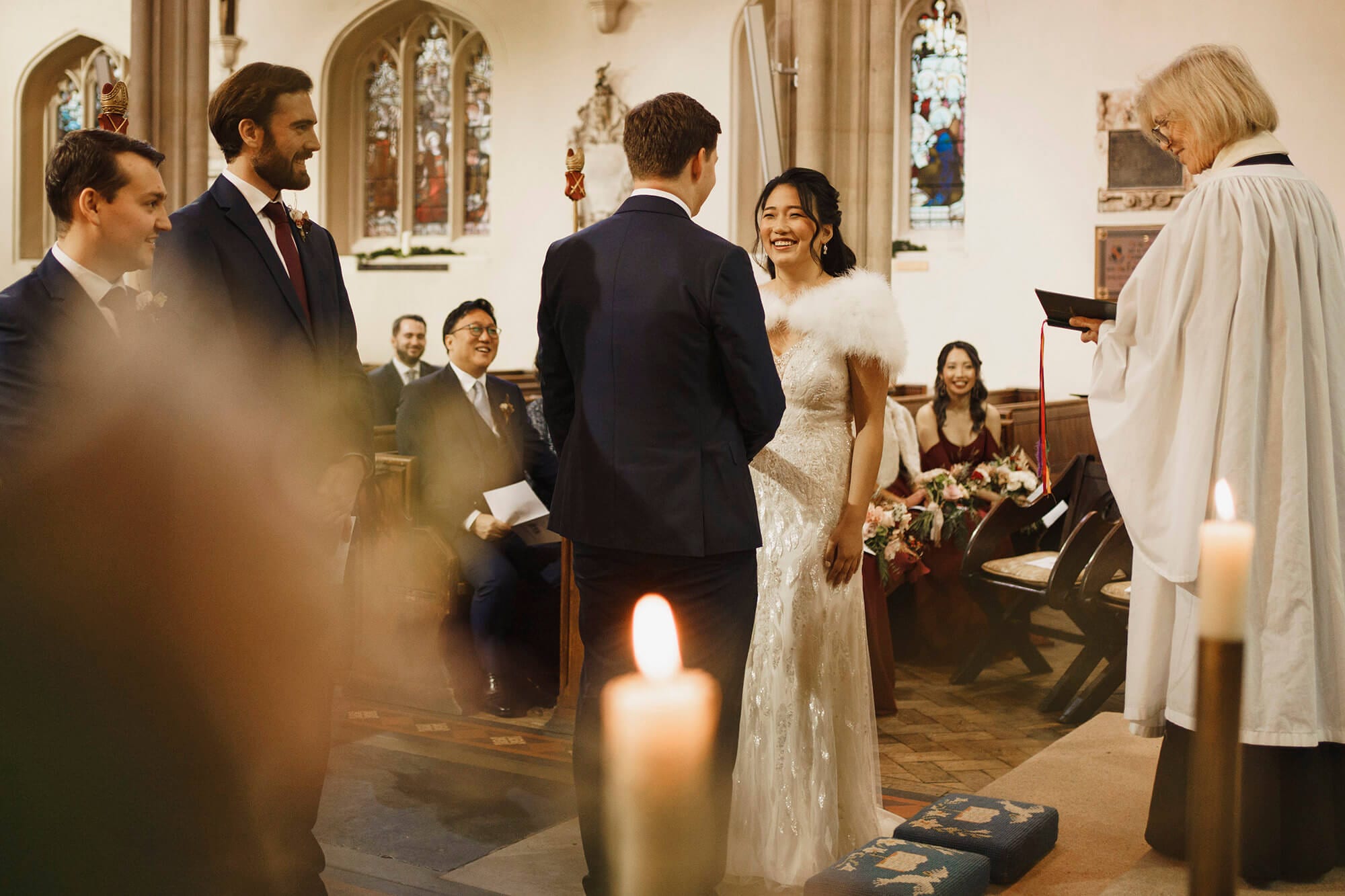 What a gorgeous church this is! I know Yoon and Tom where excited about getting married here it was such a lovely service. After the father of the bride had given Yoon away it was love and smiles all around. Yoons mum was playing some beautiful piano music too during some of the service. It’s such a huge place and has so much grandeur to it. Plus it was much warmer inside than it was outdoors! I remember being outside with Yoon, her father and her bridesmaids before we went in. It was super cold though I think the excitement might have gotten them warmed up a little! I love those little in-between moments though. Not during the bridal preparations or the wedding ceremony, but the times between the more major parts of a wedding. A wedding is ONE long day of all sorts of moments and I love to capture it all!