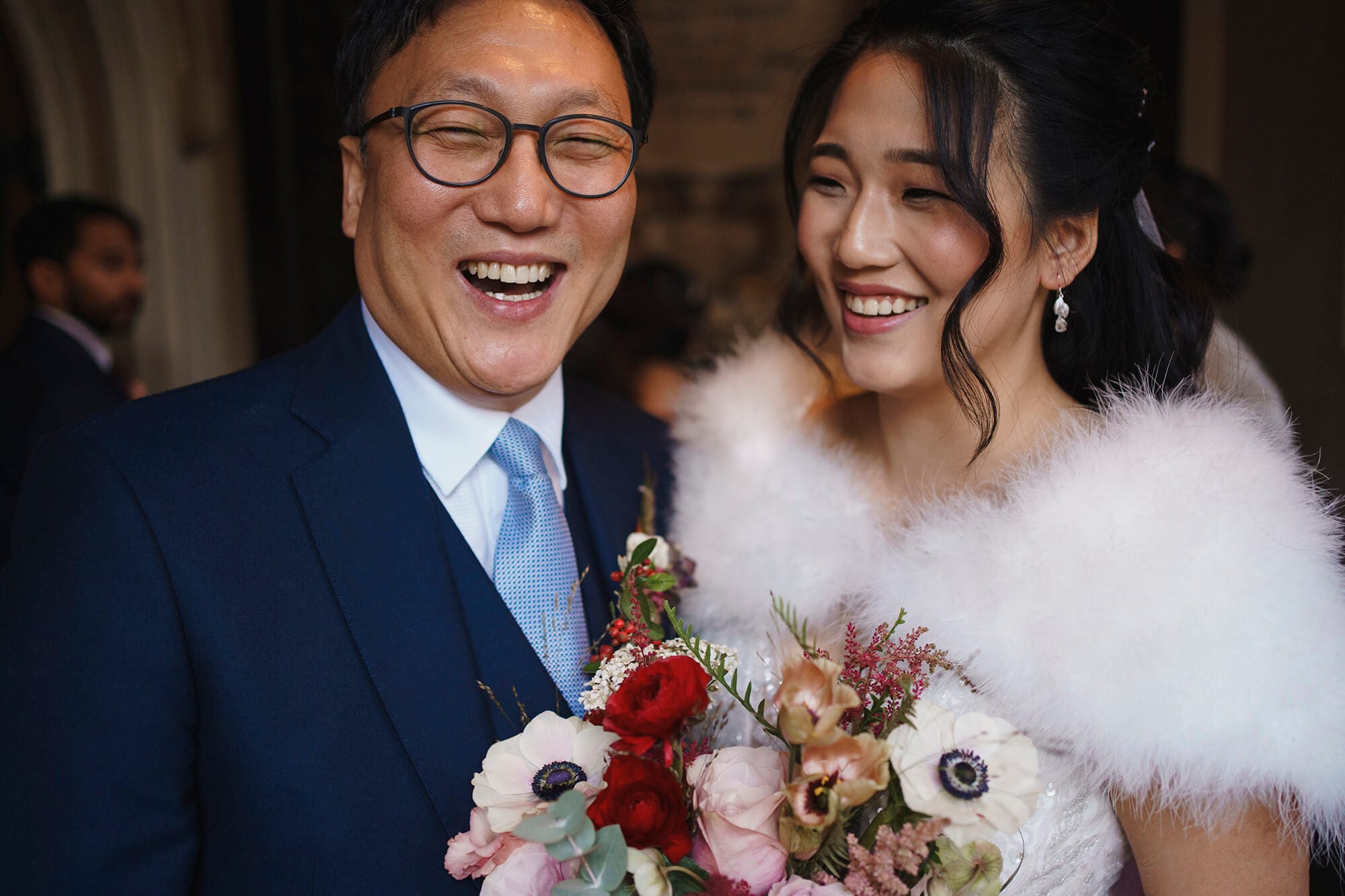 When I’m photographing weddings I really love to try and see more than what’s in front of me. Just like when there are two people talking I’ll think beyond just the people and try and focus on the connections between those people. I’m not a huge fan of posed photos. Thats why when I’m shooting my portraits, its not me posing my couples. It’s more of me giving some minor directions and then allowing couples to enjoy being together and capturing that. It’s not natural for couple to pose together in front of the camera. Thats why I don’t want them to pose. Tom and Yoon had already had a shoot with me and knew my relaxed approach to this. We were super lucky to have a dry day too for this November wedding.